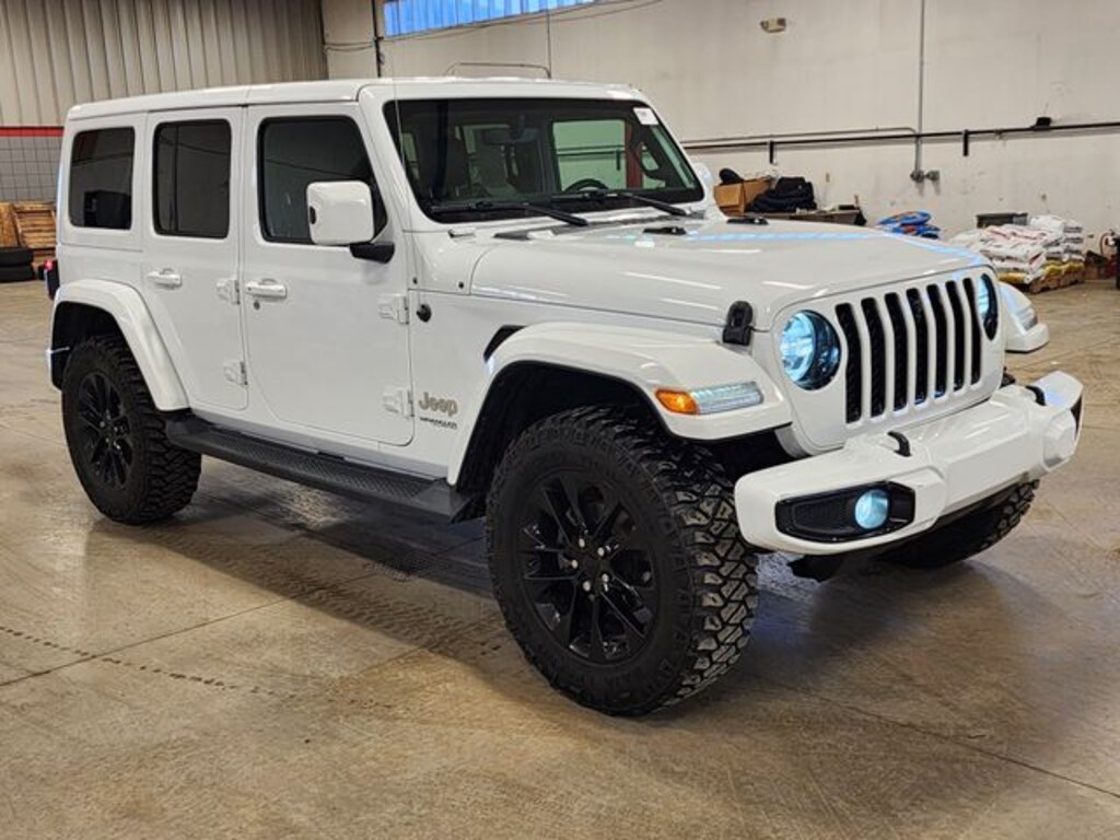 The Wrangler Unlimited High Altitude makes a statement with its bold and iconic design. The Bright White Clear Coat exterior finish is both stylish and durable, while the body-colored grille and bumpers create a cohesive and refined look. The 20-inch black aluminum wheels add a touch of sporty sophistication. The LED headlights provide exceptional visibility, ensuring you can see and be seen in any conditions. The removable sunroof allows you to enjoy open-air freedom, while the tow hooks add a touch of rugged capability. Check out our All used inventory.