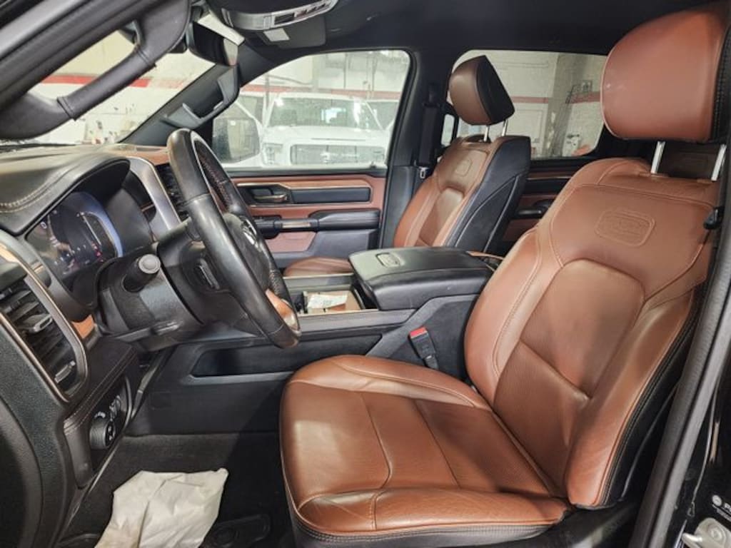 Sink into the luxurious embrace of the RAM 1500 Limited Longhorn's meticulously crafted interior. The Leather-Trimmed Bucket Seats offer exceptional support for those long drives down I-94, while the Heated and Ventilated Front and Rear Seats ensure year-round comfort, whether you're heading to a winter event in Jackson or enjoying a summer evening.